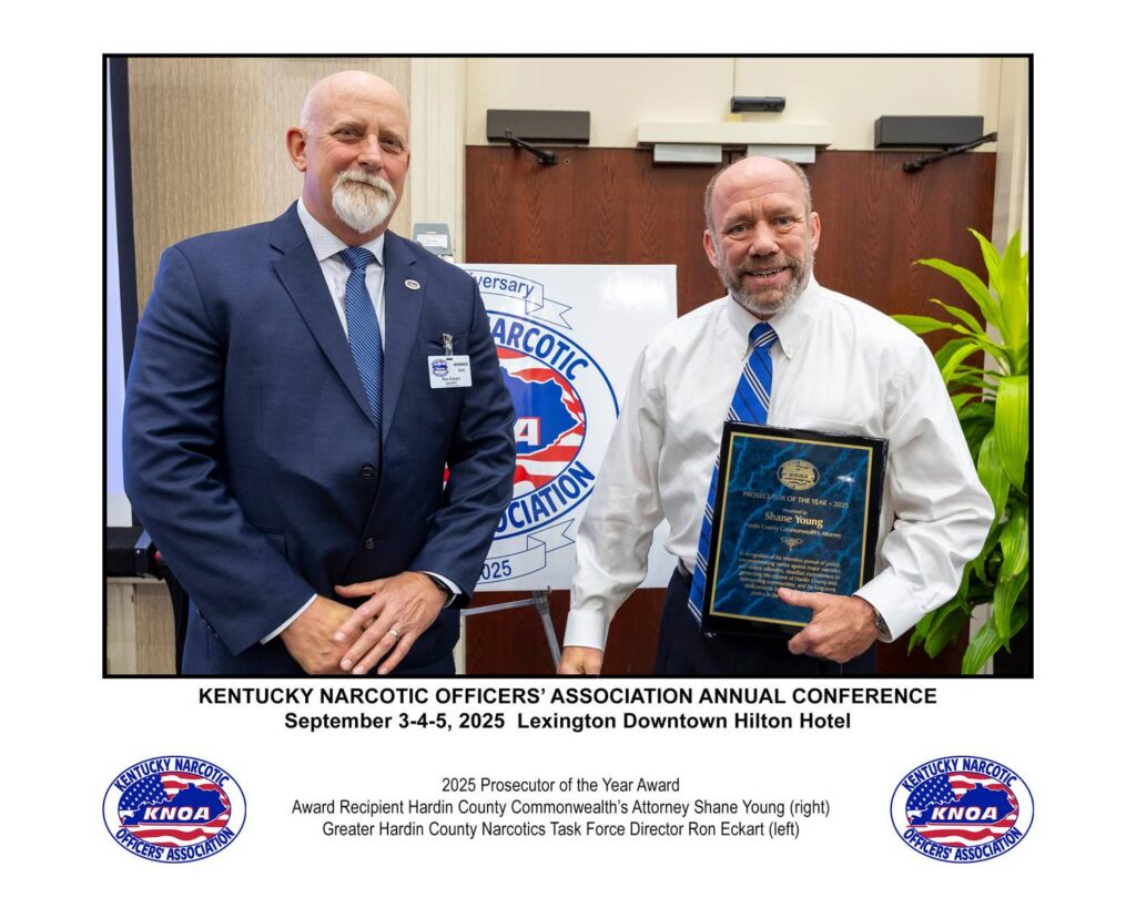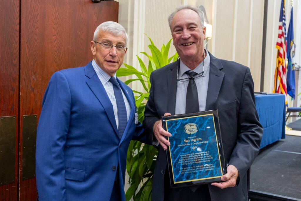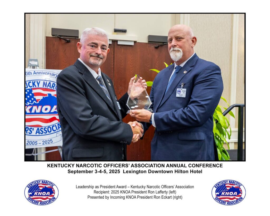 Director Tommy Loving receives service award from Bob Bushman, President of the National Narcotic Officers’ Association during the annual conference in Washington, DC, February 3, 2020.